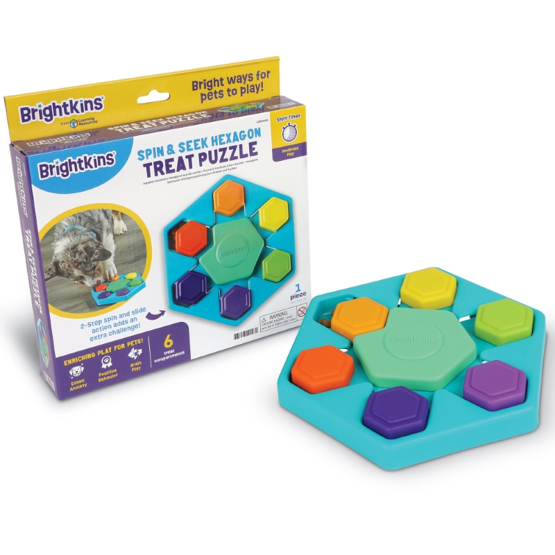 世界100カ国以上で愛される「ラーニング リソーシズ (Learning Resources)」 社が手掛けるペット向け知育玩具ブランド「ブライトキンズ(Brightkins)」よりパズルタイプのトリーツ玩具「トリーツみっけ!ヘキサゴンパズル(Spin & Seek Hexagon Treat Puzzle)」が登場!