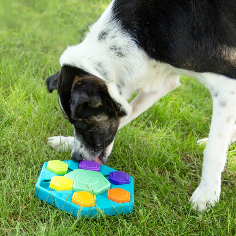 はじめは、トリーツ(おやつ)が簡単に食べられるようにパズルの中や上にトリーツ(おやつ)をちりばめた状態で与え、愛犬の様子をみながら難易度を調整しましょう。