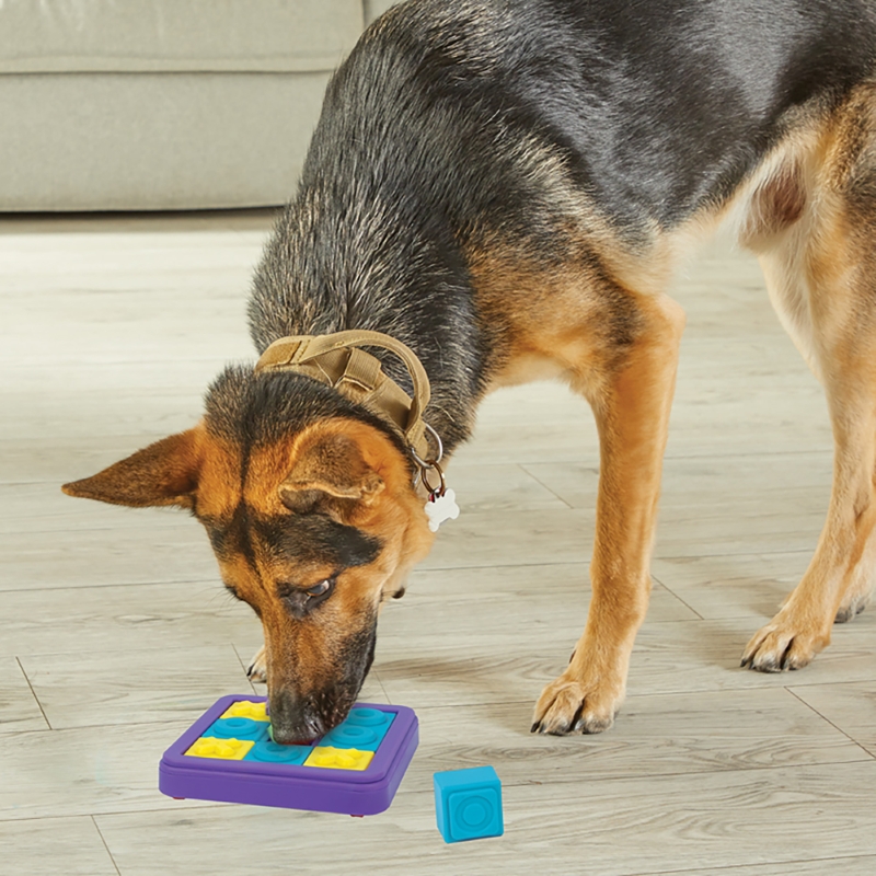 パズルピースをスライドさせてトリーツポケットが次々に開くことで、脳へ多くの刺激が与えられ飽きずに楽しめます。