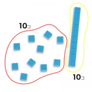11~19を数える際は、棒ブロックの横にキューブを並べて数えます。