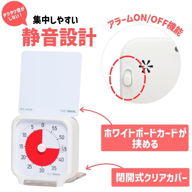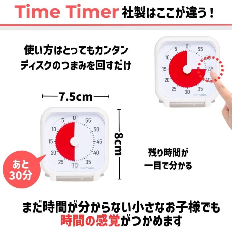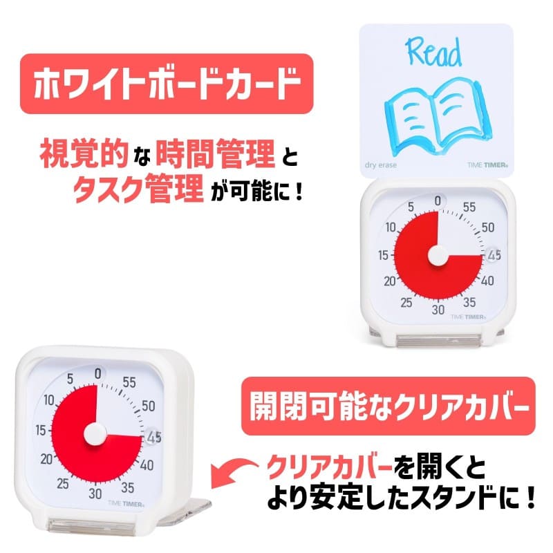 クリアカバー付きで、白と赤を基調とした色鮮やかなタイムタイマーです。