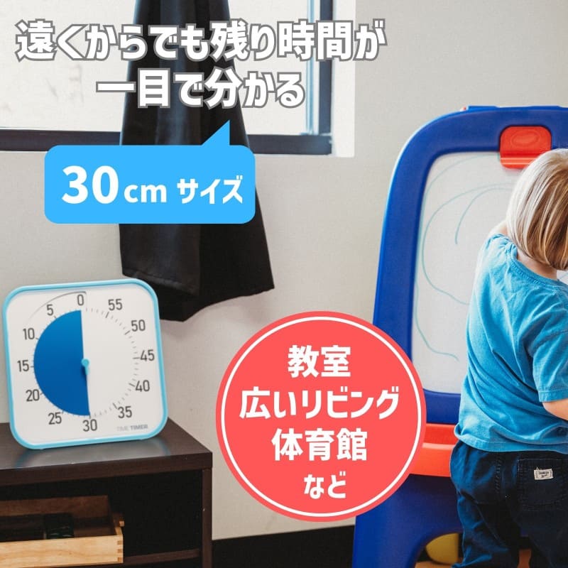 遠くからでも残り時間が一目でわかる30cmサイズです。
