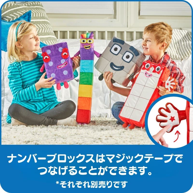 ぬいぐるみにはナンバーブロックスの仲間たち(別売り)を簡単につなげられるマジックテープが付いています。