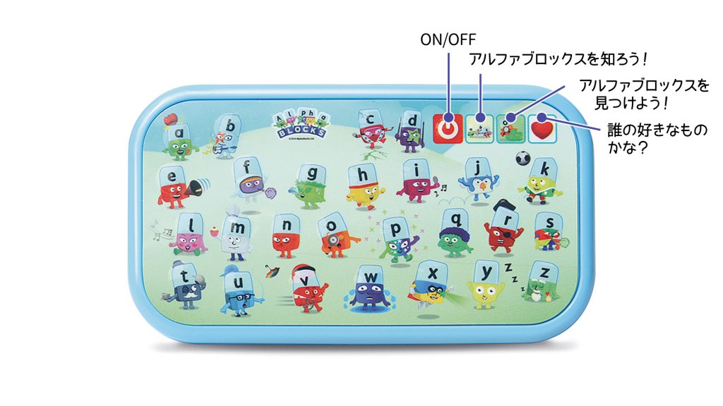 アルファブロックスに会おう! どれかのアルファブロックスを押してみて!